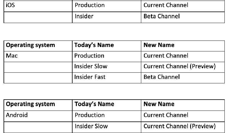 In June 2020, we changed the update channel names for Microsoft 365 Apps running on Windows (MC212678, May 2020). We are now updating iOS, Mac, and Android applications to bring consistency across the platforms Office is available on. Key Points:…